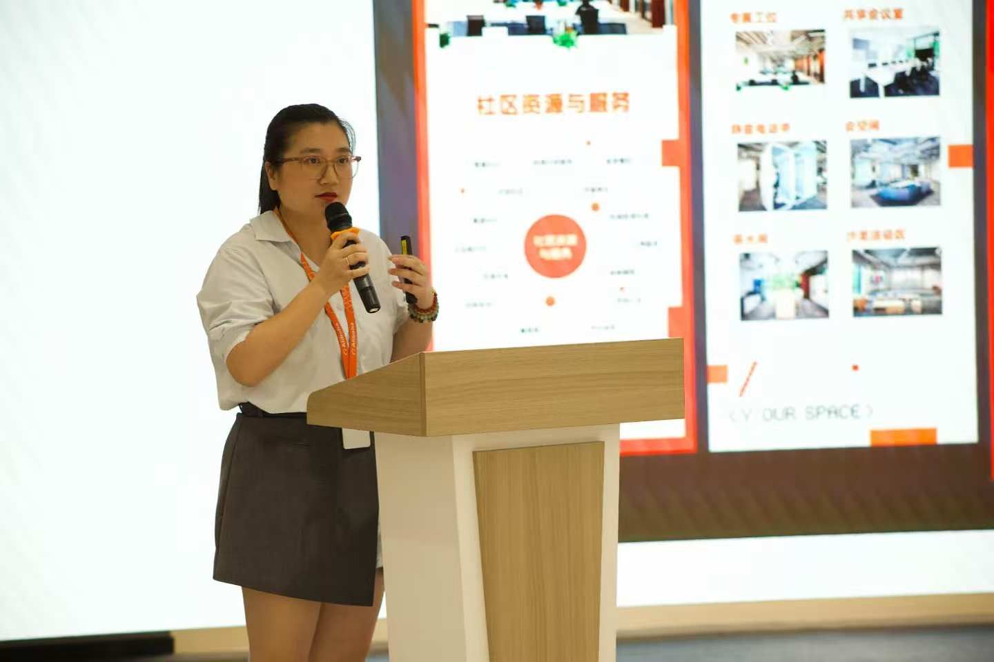 随后,阿里巴巴数字生态创新园负责人刘佩蓉进行了园区推介和分享,她以“AI+电商新引擎,青年创客引力场”为主题,详细讲解园区为初创企业打造的“创业+学习+生活”模式的“亲橙空间”陪伴式创业空间,构筑起青创企业成长的理想家园。并欢迎青创学子加入阿里生态园区,为青年创客筑梦,让全球青年看见数字创业的未来。