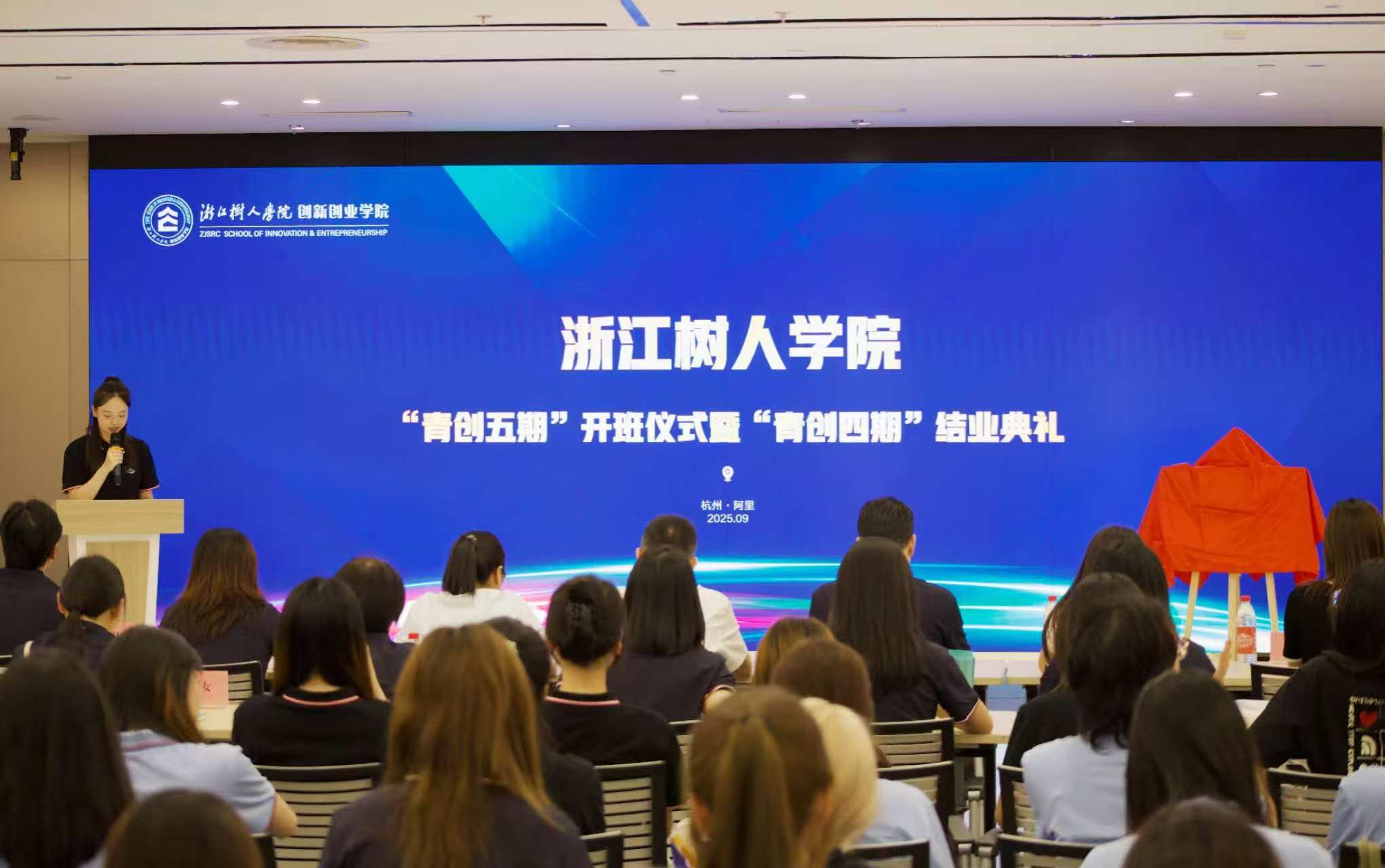 2025年9月23日,浙江树人学院“青创五期”开班仪式暨“青创四期”结业典礼在阿里巴巴数字生态创新园青橙国际创新创业中心(余杭区五常街道)隆重举行。活动由“青创四期”拱宸桥校区班长、2025年“就创奖助金”获得者郑昕怡同学主持。创新创业学院全体教师,五常街道领导,阿里巴巴数字生态创新园负责人,树人“青创五期”新学员、“青创四期”荣誉学员、创业导师代表等近百人参加本次活动,校政企多方齐聚,共同见证“青创班”育人成果传承与双创新程开启。