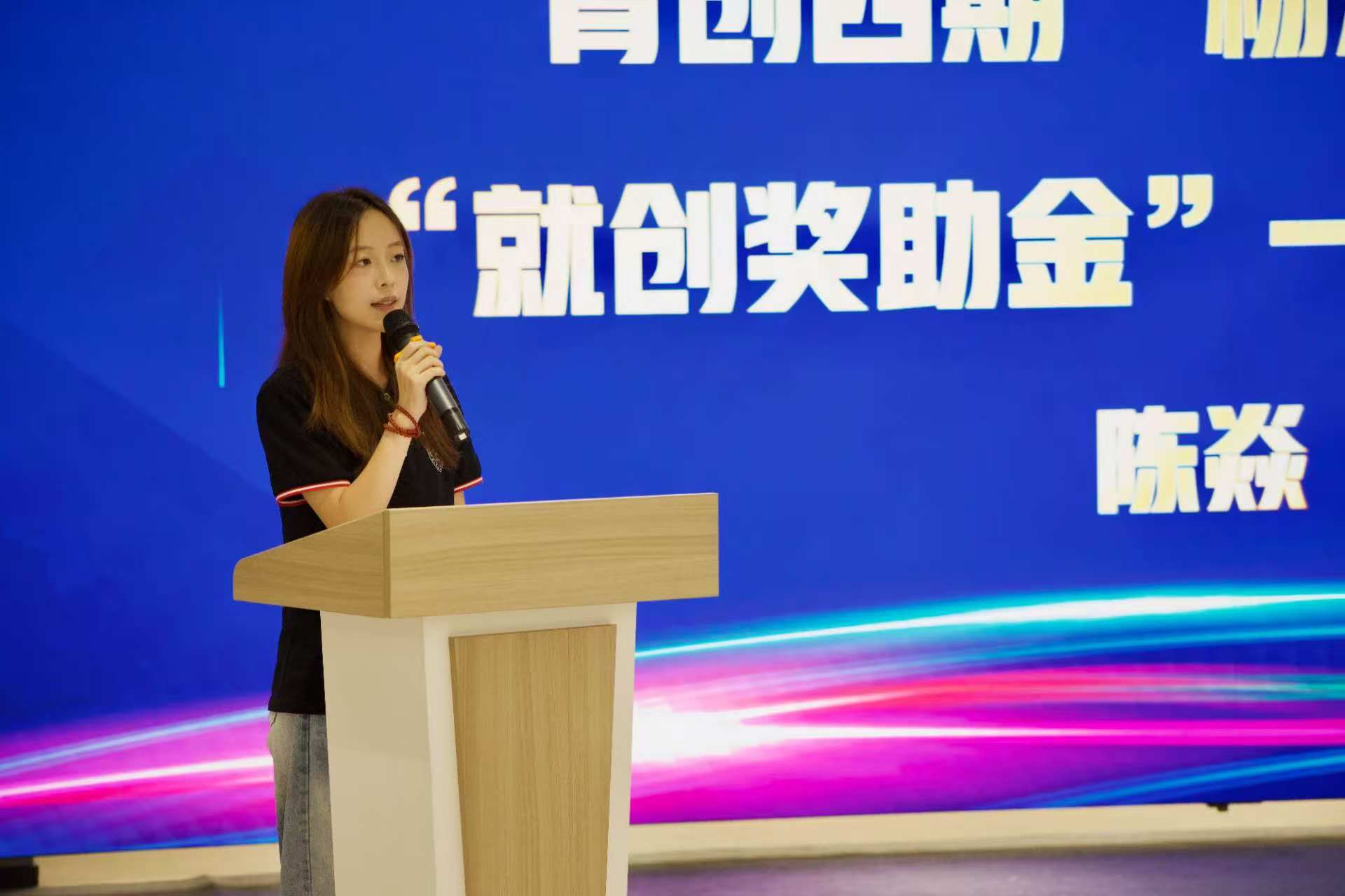随后,创新创业学院院长郭丰、副院长谢凌云、“青创四期”班主任马海枫共同为2025年“就创奖助金”一、二、三等奖获得者、“青创四期”优秀学员陈焱、郑昕怡、王囿翔、张可儿、王玮琦、钱欣玥颁发“青创班”荣誉学员证书、雏鹰徽章、“就创奖助金”奖状以及奖励金。“就创奖助金”一等奖获得者、“青创四期”杨汛桥校区班长陈焱分享了成长历程:“从项目孵化到创业起步,从路演实战到成果展示,每一步都离不开学校、学院与老师的关心和指导。我曾带领创业团队荣获浙江省第十四届‘挑战杯’大学生创业计划竞赛金奖、第十四届全国大学生电子商务挑战赛特等奖、浙江省国际大学生创新大赛银奖等荣誉,这十余项国家级、省级、市级、校级学科竞赛获奖的背后,是无数次的讨论与矢志不渝的坚持。这份由潘宏超学长设立的奖助金,不仅是对我们过往努力的肯定,更是激励大家继续突破的责任担当。”
