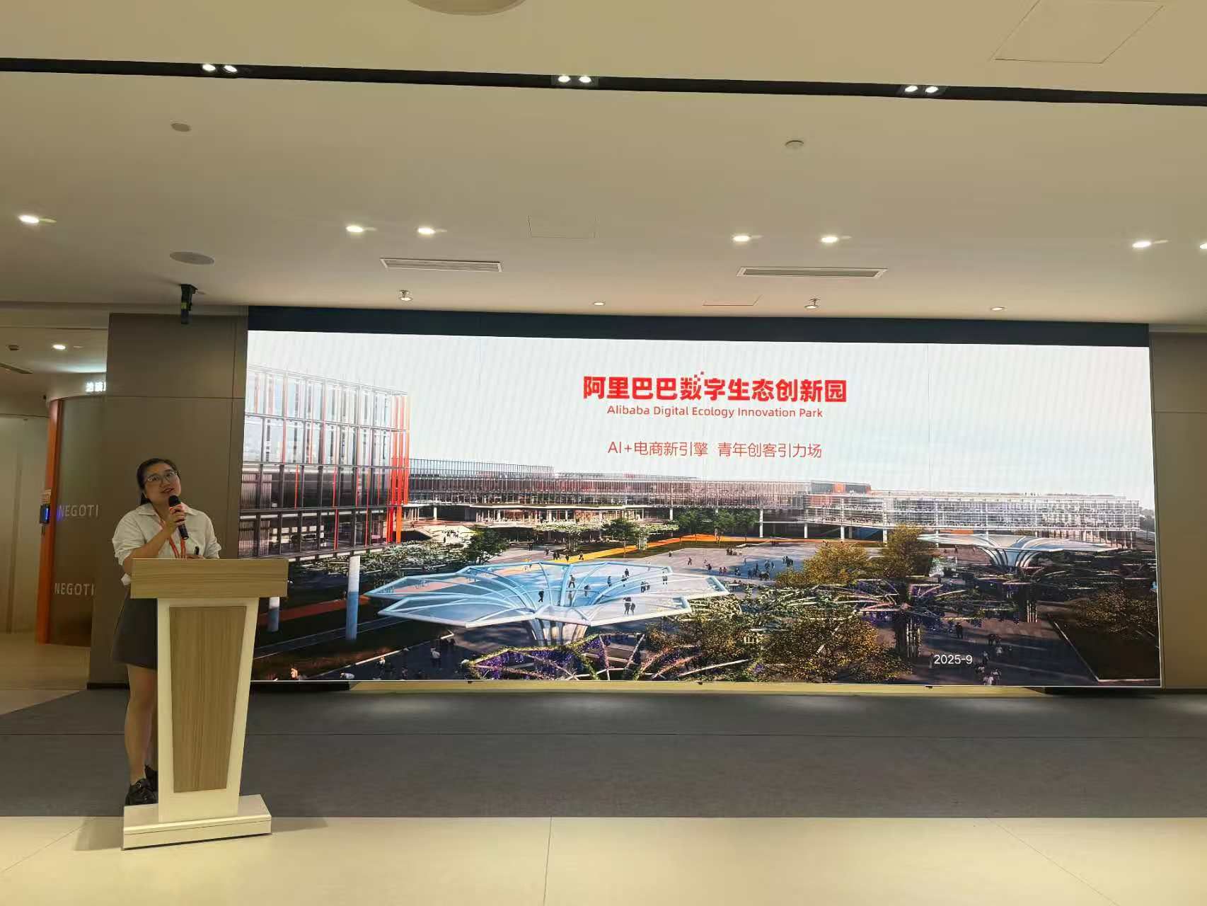 创业沙龙结束后,“青创班”全体师生参访阿里巴巴数字生态创新园,实地走进数字化展厅、创新实验室与业务实训区,沉浸式感受头部企业在技术研发、生态构建与商业运营中的创新逻辑,为后续双创项目的技术落地、模式设计积累前沿灵感。