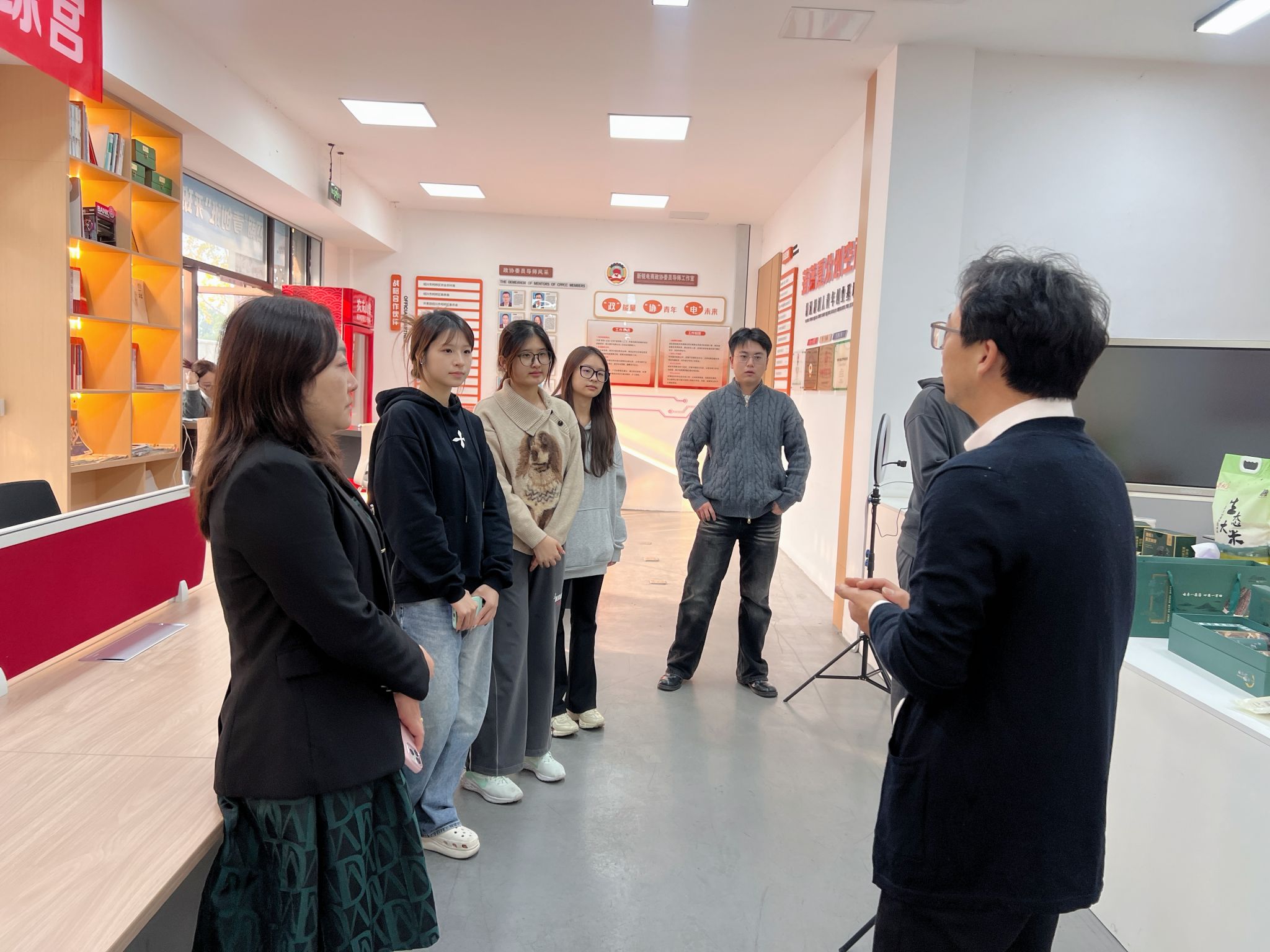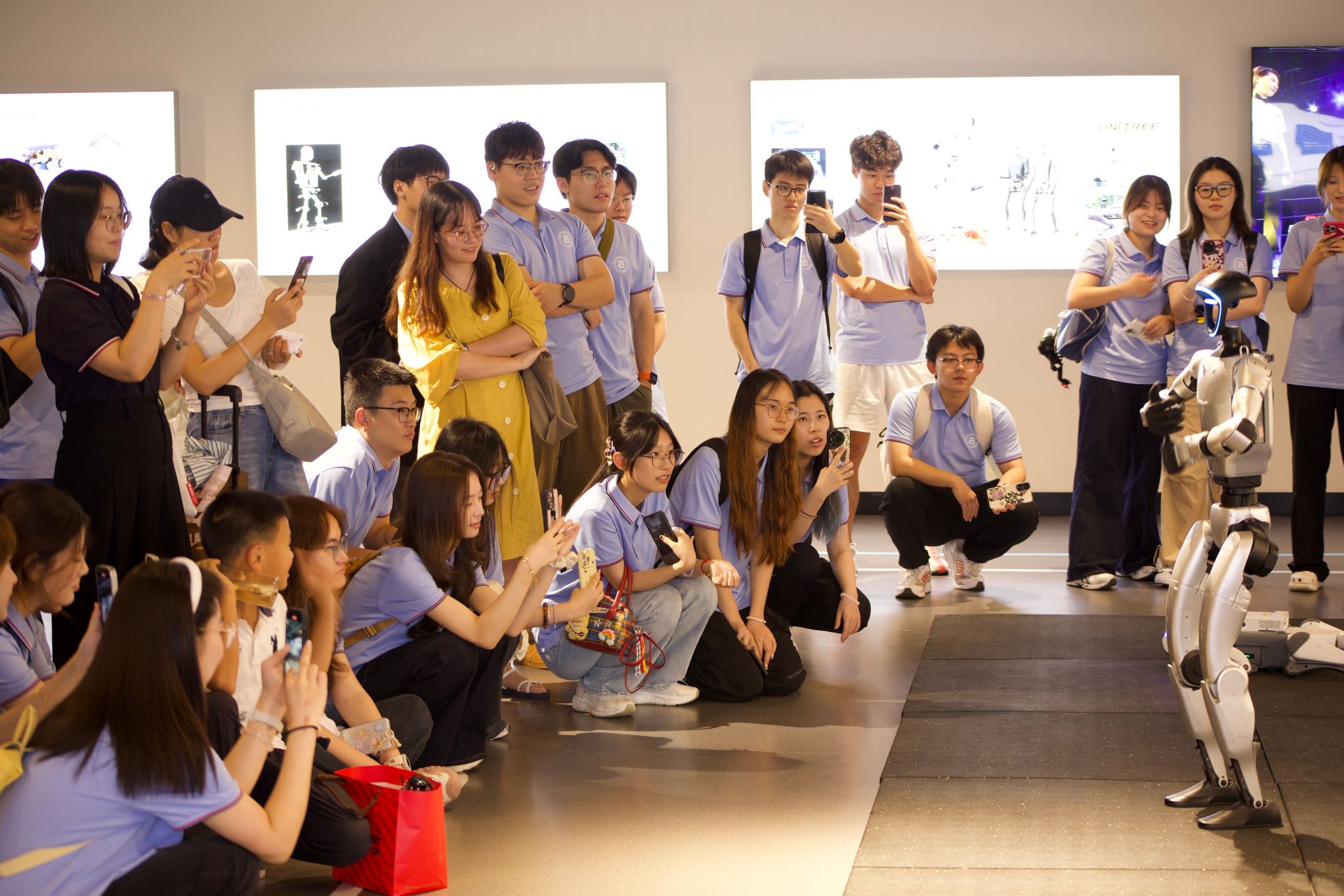 课程团队带领“青创班”学员走进杭州城西科创大走廊“城市大脑”,让同学们在实景中感受AI技术的落地应用——大家近距离接触并体验了当前网红AI——“宇树科技”的机器人,在与机器人的互动中感受前沿AI技术的灵动与智能;同时亲身体验“创新之门”,直观认识杭州作为“创新之都”在人工智能领域的蓬勃发展态势与产业活力。