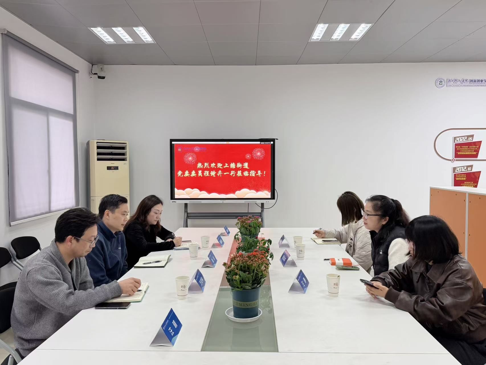 3月17日上午,杭州市拱墅区上塘街道党委委员程诗卉等一行莅临我校创新创业学院,围绕校地协同、双创赋能、产业融合等开展深度洽谈,推动创新创业资源精准对接。